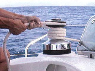 | Raising the sails - OK this is a good 60 seconds worth of workout. On a 45 foot boat,